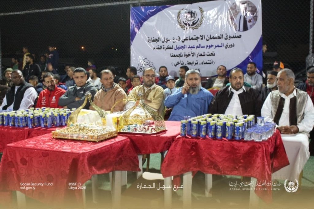 إدارة المخاطر بطرابلس تكرم رئيس مجلس الادارة و المدير العام لصندوق الضمان الاجتماعيفي اجواء رمضانية انطلق مساء اليوم السبت الاول من شهر رمضان دوري المرحوم سالم عبدالجليل لكرة القدم تحت شعار (انتماء-ترابط- تأخي)