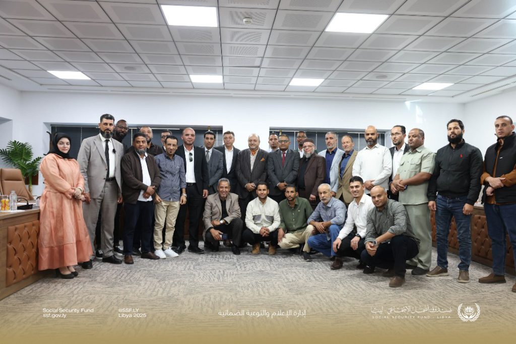 التقى رئيس مجلس الإدارة والمدير العام لصندوق الضمان الاجتماعي، الدكتور/ إدريس حفيظه المبروك، برؤساء أقسام الإعلام والتوعية لدى الفروع، عقب اختتام مشاركتهم في ورشة عمل نظمتها إدارة الإعلام والتوعية بالتنسيق مع المركز الليبي للاستشارات والتنمية، وإدارة الشؤون الإدارية والخدمات.