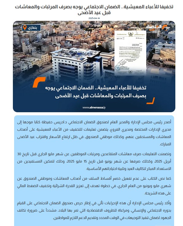 تخفيفا لاعباء المعيشية … الضمان الاجتماعي يوجه بصرف المرتبات والمعاشات قبل عيد الاضحى