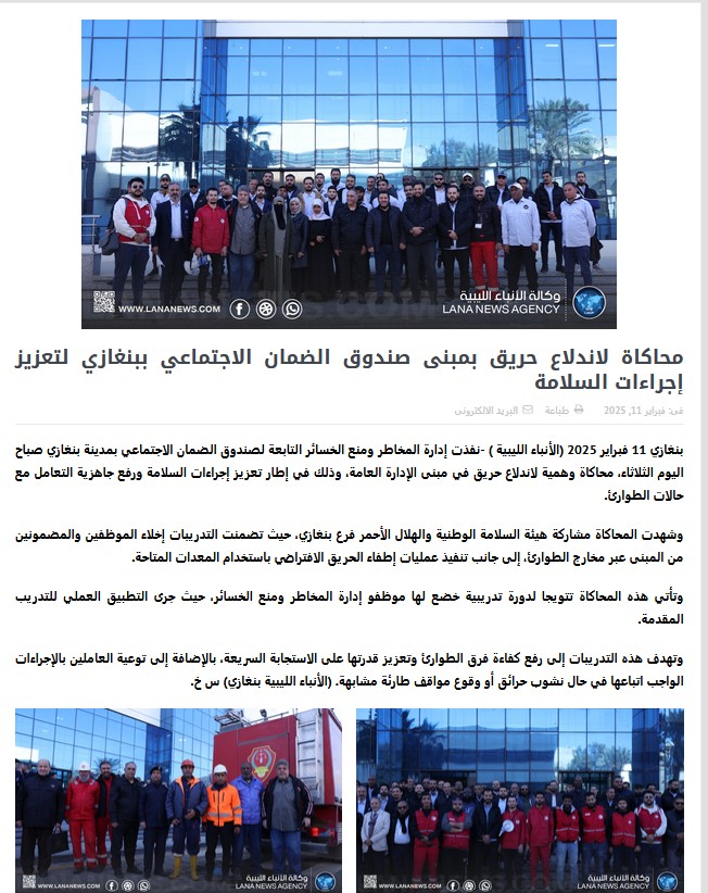 محاكاة لاندلاع حريق بمبنى صندوق الضمان الاجتماعي ببنغازي لتعزيز إجراءات السلامة