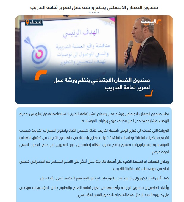 صندوق الضمان الاجتماعي ينظم ورشة عمل لتعزيز ثقافة التدريب