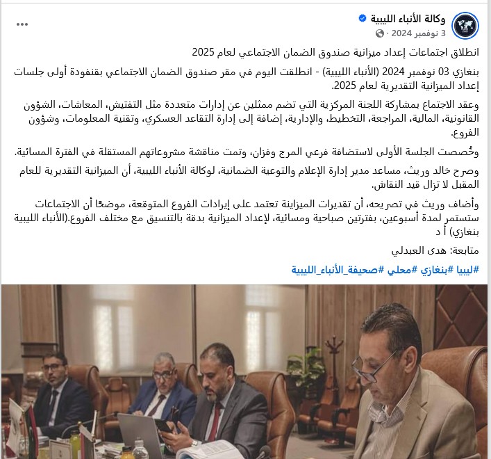 انطلاق اجتماعات اعداد ميزانية صندوق الضمان الاجتماعي لعام 2025.